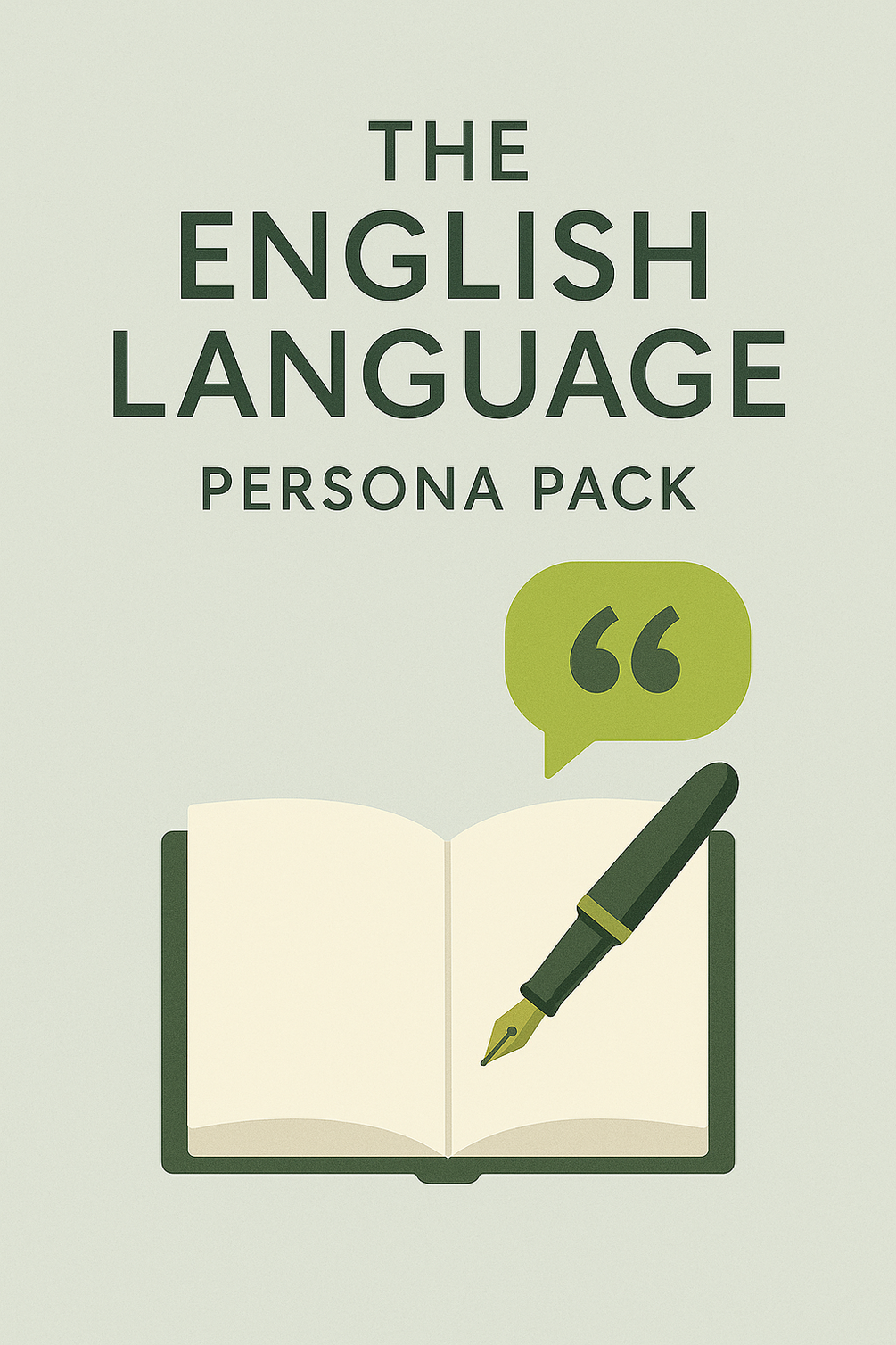 The English Language Persona Pack is a classroom-ready collection of 10 expertly designed AI prompt templates for Claude, GPT-4, and beyond — created to help you guide learners through key English skills with clarity, structure, and expressive depth.